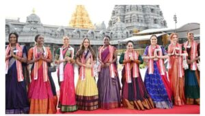 ఈరోజు (మే 15న) ప్రపంచ సుందరీ మణుల విశిష్ట సందర్శనతో యాదాద్రి శ్రీలక్ష్మీనరసింహస్వామి ఆలయం కన్నుల పండువగా మారిపోయింది. ప్రత్యేక సంప్రదాయ దుస్తుల్లో గురువారం సాయంత్రం ఐదు గంటలకు, 9 దేశాలకు చెందిన 30 మంది సుందరీమణులు ఆలయానికి చేరుకుని స్వామి వారి దర్శనం చేసుకున్నారు. ఈ సందర్భంగా ప్రభుత్వ విప్, ఆలేరు శాసనసభ్యులు బీర్ల ఐలయ్య, ఆలయ అధికారులు వారికి ఘన స్వాగతం పలికారు. ఇది కేవలం పర్యటన మాత్రమే కాదు, భక్తి, సాంస్కృతిక అంశాలను ఒకే వేదికపై ప్రదర్శించే అపూర్వమైన అనుభవంగా నిలిచింది.